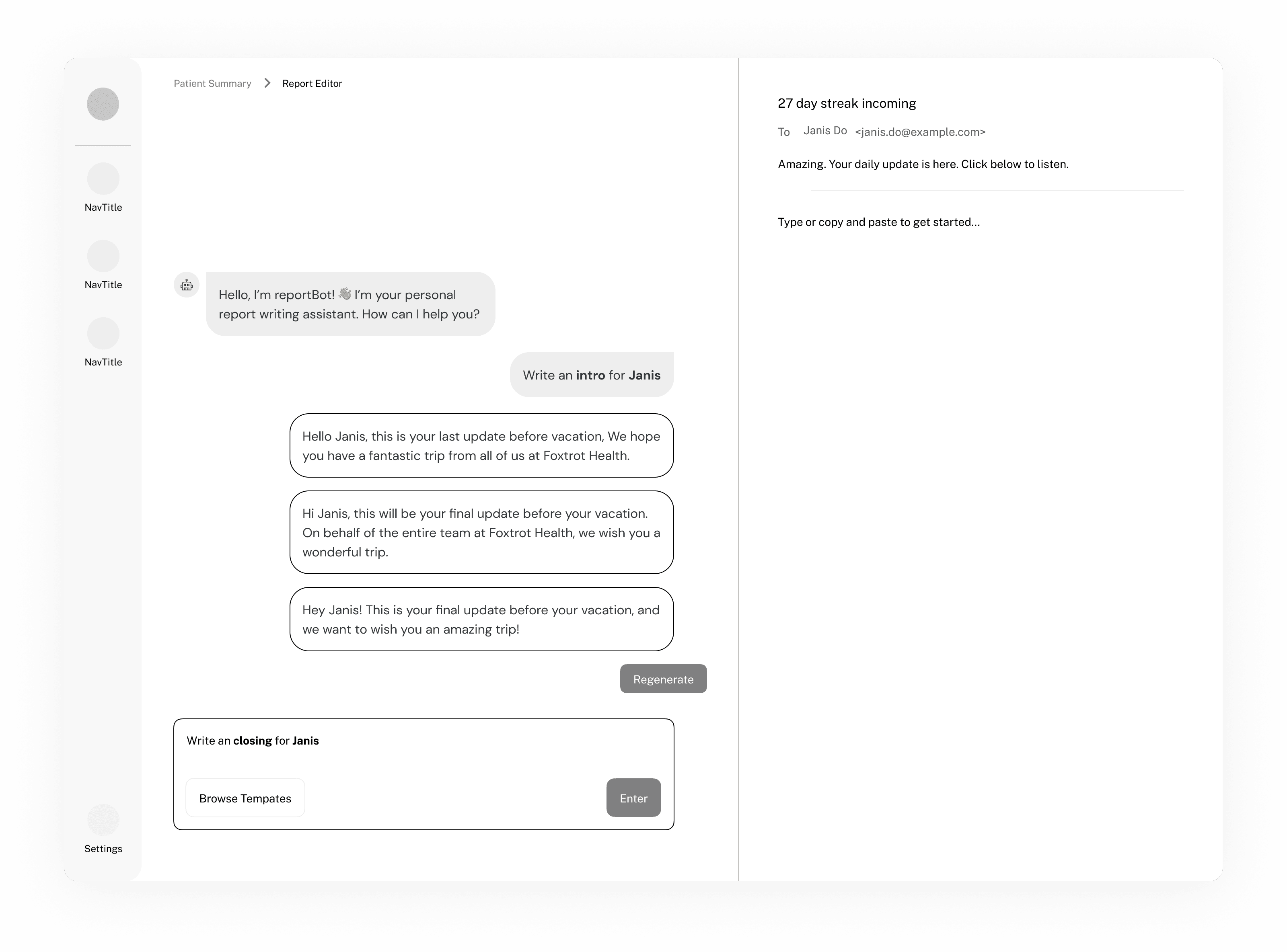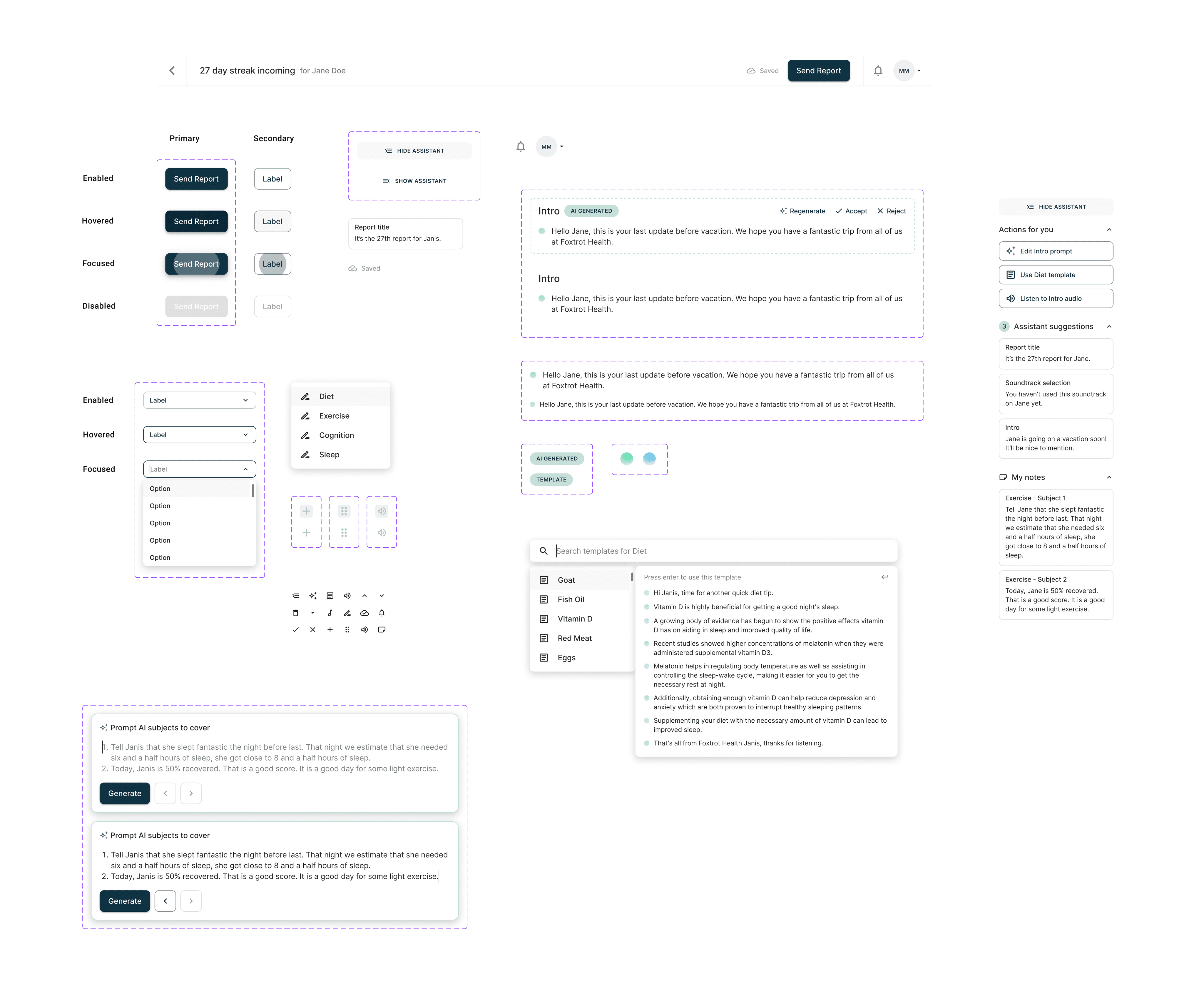 As an independent and sole product designer, I was tasked with designing a product that would optimize and automate the current process of creating daily patient reports. I led the design of the product from scratch, creating core features of the report editor such as template utilization and a writing assistant. From research to high-fidelity mockups, I helped bring the product vision to life.